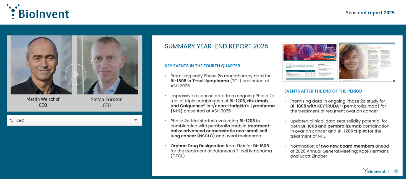 Listen to the Redeye analyst’s interview with CEO Martin Welschof and CMO Andres McAllister about BI-1808 for the treatment of ovarian cancer.