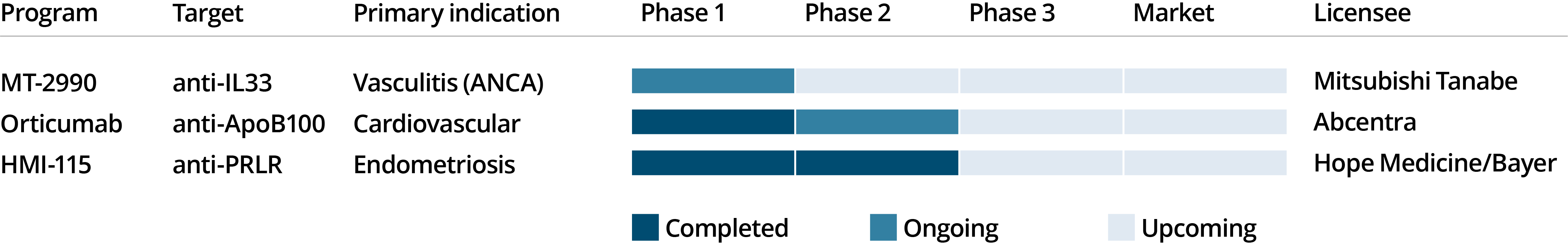 THREE CLINICAL PROJECTS OUTLICENSED