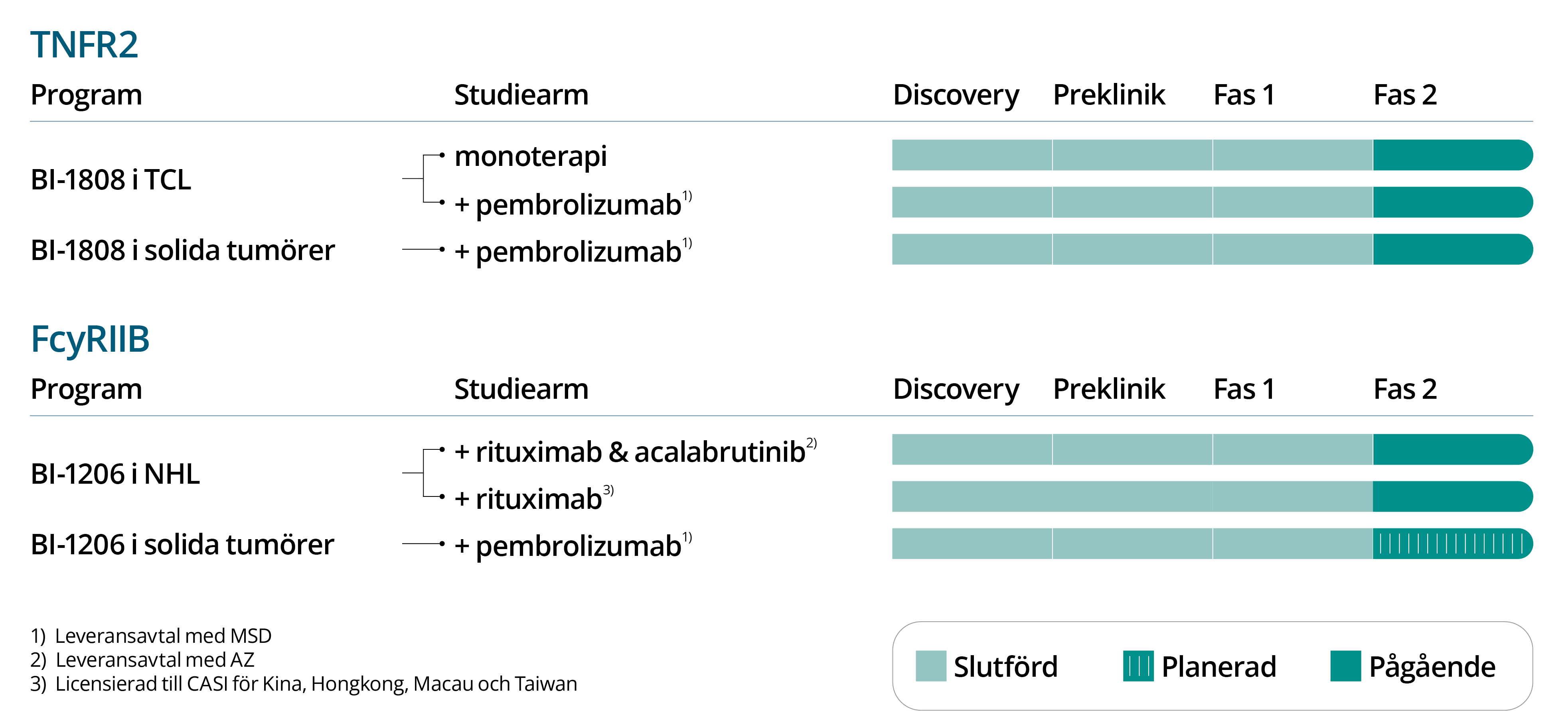 Fokus för all forskning och innovation som bedrivs på BioInvent är utvecklingen av antikroppar för behandling av cancer. BioInvents innovativa antikroppar avser väsentligen förbättra effekten av de checkpoint-hämmare som för närvarande finns tillgängliga och/eller aktivera immunitet mot cancer hos patienter som för närvarande inte svarar på sin behandling.