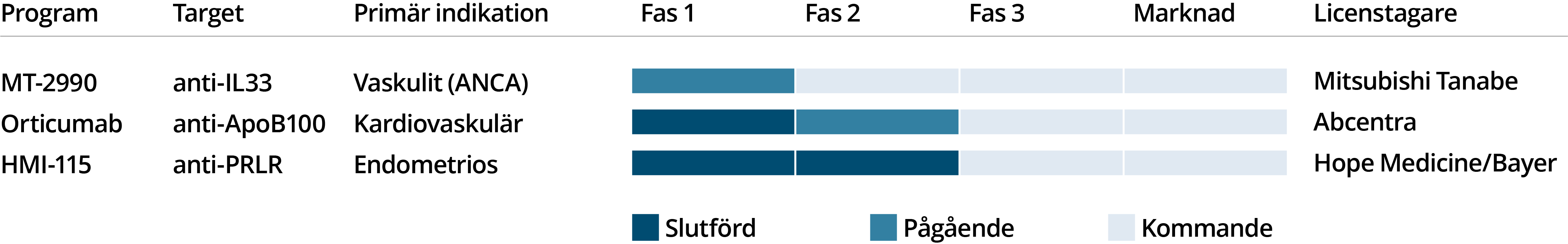 TRE KLINISKA PROJEKT UTLICENSIERADE